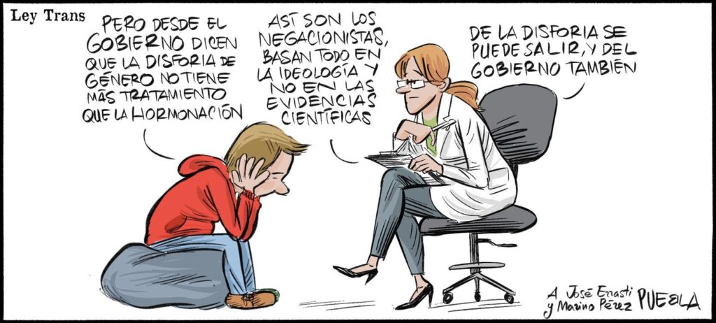 Por supuesto, para que no le falte la guinda al pastel, en el artículo 39 de la ley “Trans” se establece que el derecho a la rectificación de la mención registral relativa al sexo no puede estar condicionado por la exhibición de informe médico o psicológico relativo a la disconformidad con el sexo registrado en el nacimiento. Solo depende del exclusivo deseo de la persona en un momento y circunstancias determinados, sin atender a mayores consideraciones, sin tener en cuenta las consecuencias que esa decisión unipersonal pueda causar en si misma o en otras.
