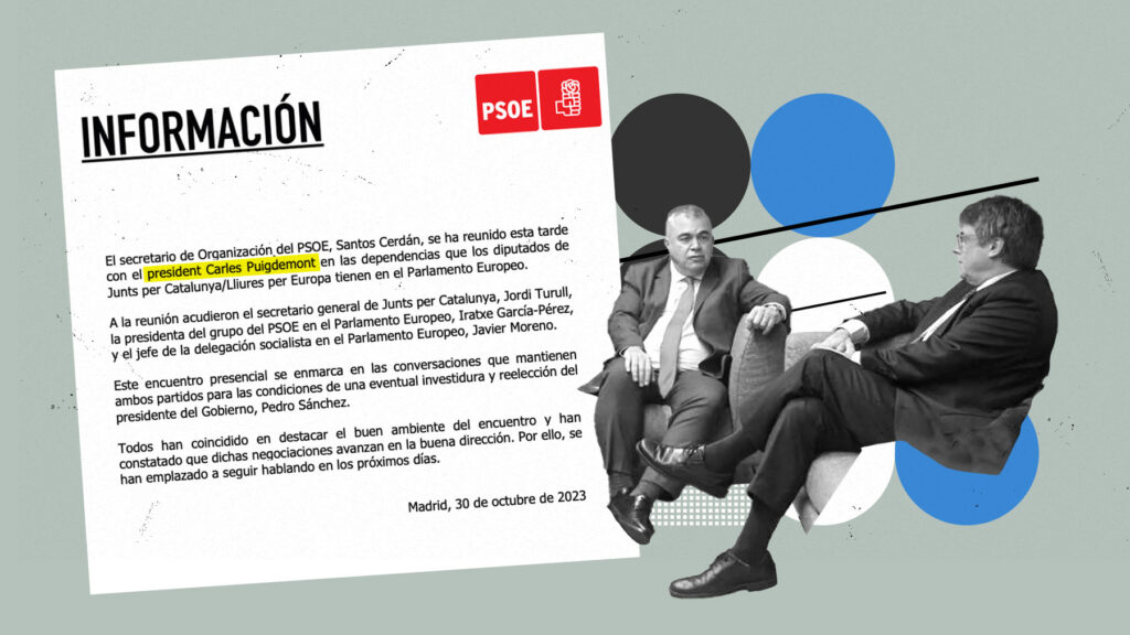 Después del Comité Federal, Pedro Sánchez sólo tardó dos días en enviar al secretario de organización de su partido a Bruselas para entrevistarse con Puigdemont. El 30 de octubre, sin demora, Santos Cerdán se sentó frente al que ya llamaban “president”, bajo una inmensa fotografía de una multitud blandiendo una urna de las utilizadas en el ilegal referéndum del 1 de octubre de 2017. Vaya recochineo y humillación. Por supuesto lo hablado fue silenciado, como siempre la característica opacidad del partido socialista se impuso a la lógica necesidad de conocer de los españoles.